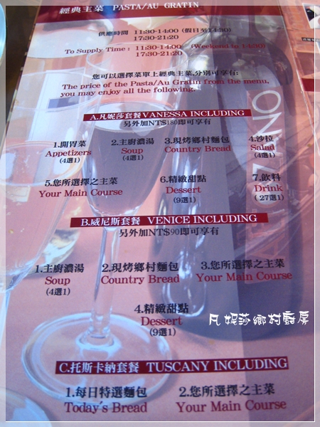 主餐太多了,就沒一頁一頁拍了,主要有分義大利麵、焗烤和排餐三大部分。