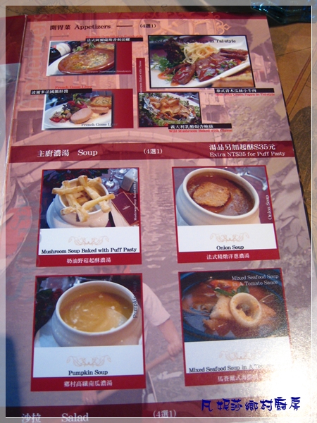 前菜和湯的選擇有: (沙拉種類沒拍到)