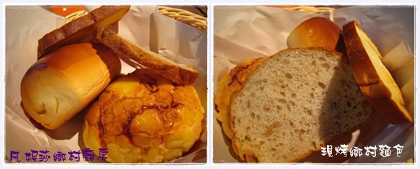 我們點了一個A套餐和一份B套餐;點餐後稍微等了一下子才開始上菜,麵包上來前就先聞到很香的烤麵包味,不久後就送上熱呼呼的現烤鄉村麵包,有四種不一樣的麵包,還有很好吃的麵包抹醬。